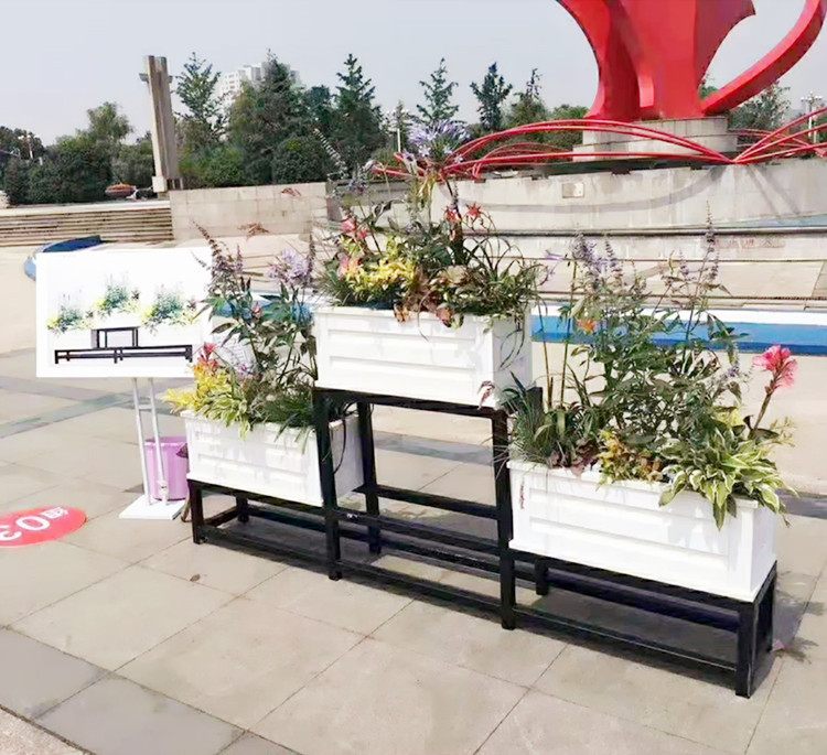 景观花箱作为一种新生的道路及公共场所园林设施越来越多地被人们广泛应用,花箱不但能起到美化环境的作用,也给市政道路,文化广场,公园,小区增添浓厚的艺术。城市街道布置道路花箱,还有在一些公园、广场、小区、河道旁、商场等地方同样如此,具有很高的观赏性和实用性。